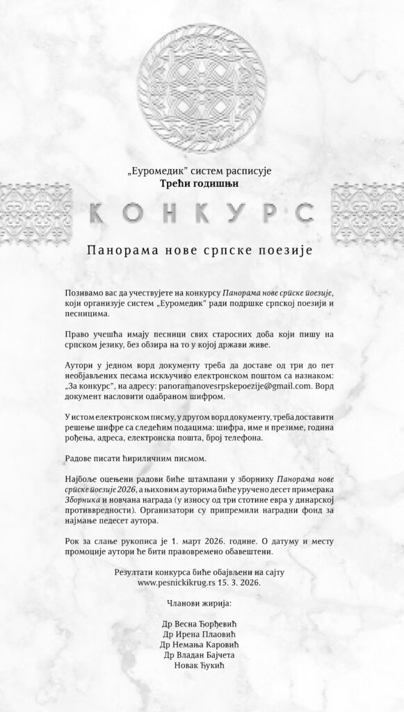 - Расписан конкурс за meђународну награду за превођење поезије „Коља Мићевић“